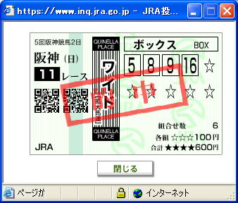 ちょっと捨てがたいので4頭ボックスの3連複を買って置きます。私が自然に武豊を選択すると・・・。