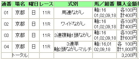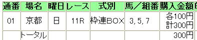 ・別途、赤黄橙の枠連BOXは購入。計3500円。あーもったいな。