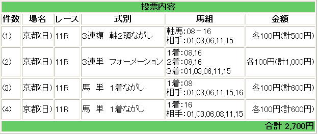 ・前日買いをして、いつもの4頭ボックス買いなら何がしかは当っていました。