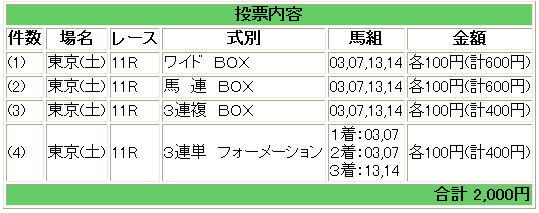 | 1 | 7 | 2.4 | シーキングザダイヤ | 武豊 | 1 | 新1単1複1 | ◎ | |