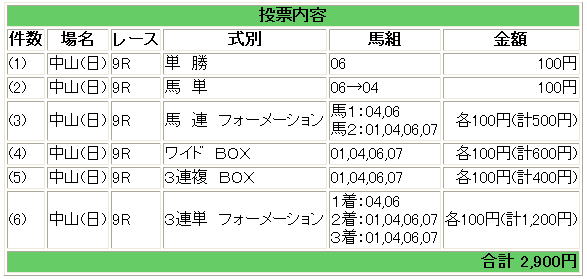 | 1 | 4 | ディープインパクト | 武豊 | 1 | ○ | 複勝 | 04 | 100円 |