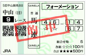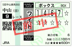 | 4 | 3 | ドリームパスポート | 内田博 | 2 | 枠連 | 1−3 | 1,000円 | |
