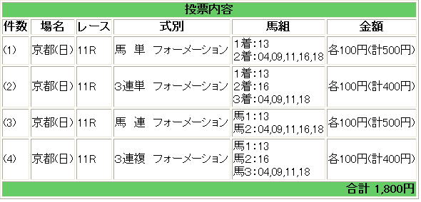 <私の買い目> オッズは10/13(土)20:30のものです。
