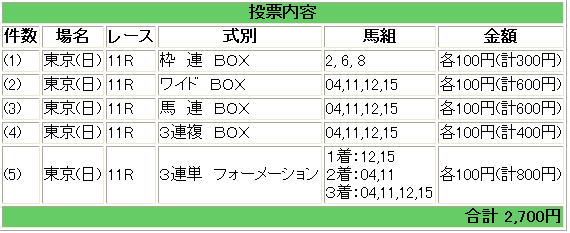 <私の買い目> オッズは10/27(土)18:00のものです。