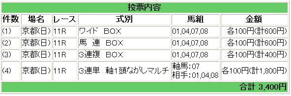 <私の買い目> オッズは11/10(土)22:00のものです。