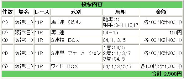 アルペンリリー | 54 | ・今年は知ってる馬がいない オディールくらいか。 ・エイシン・マイネを買っとくのが 固いかな。 |