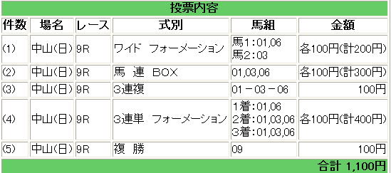 | 1 | 3 | マツリダゴッホ | 蛯名 | 9 | ● | 複勝 | 03 | 1,030円 |