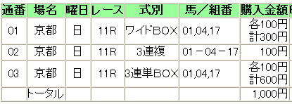 | 5 | 3 | 11.0 | スズカフェニックス | 武豊 | 単3複2 | 1 | ||
