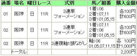 ・ちょっと最近ほかのレースで当たるので調子に乗りすぎ傾向か。