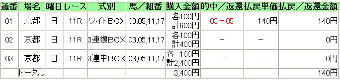 | 11 | 15 | ハシッテホシーノ | 松岡 | 12 | 71.6 | 3連単 | 05−12−03 | 4,640円 |