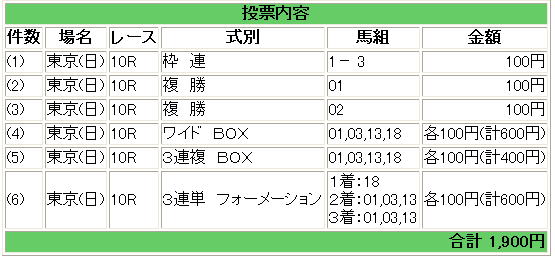 でもカンパニーの単勝や今回の6頭3連複BOXでは取りガミの結果。