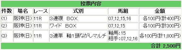 3連複の一点買い。保険にワイドBOXと行きます。
