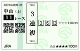 | 4 | [Res: 2] お返事ありがとう!結果報告です。 投稿者:ぶらいと 投稿日:2006/03/28(Tue) 00:00 先週中山11日経賞で勝負しました。基本的には3連単のフォーメーション中心で買うのですが分かりやすい買い目にして欲しいと事前にをрュれたお姉さんから言われてましたのでシンプルに3連複軸 |