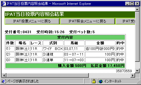 3連単も一点買いで勝負。これが見事的中。ちょー気持ちいいーでした。