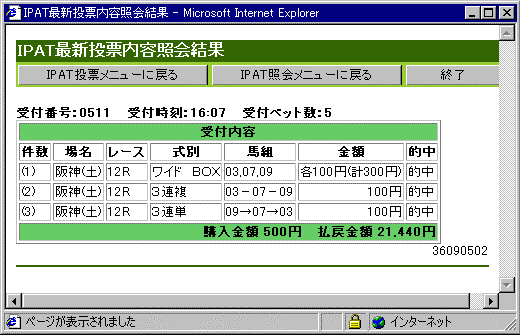 それほどの足ではなく、1.5馬身ぐらい空いていたので的中が確定。