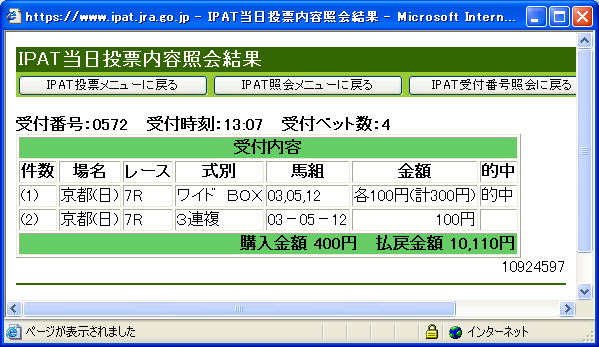 ・ついに来ました。ワイドの万馬券!。兼ねてよりここに乗せたかったんです。