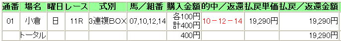 ・めずらしくも3連複の4頭ボックス買いで万馬券が当りました。