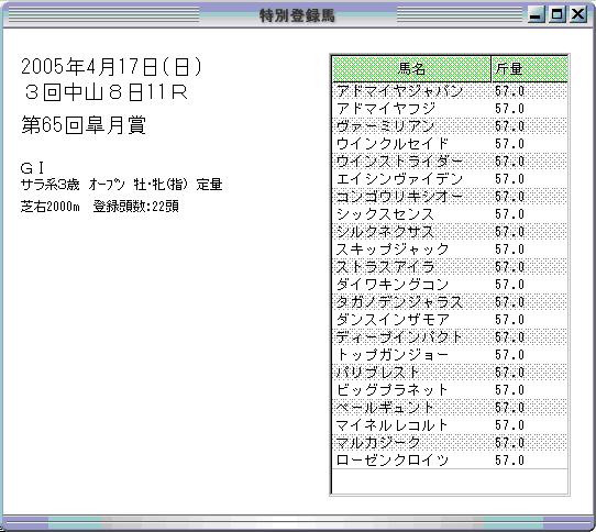 | 16 | アドマイヤジャパン | 牡3 | 栗 | 57 | 横山典 | @二千|B二千|@二千|A二千 | −−▲− | ×▲○−○ |