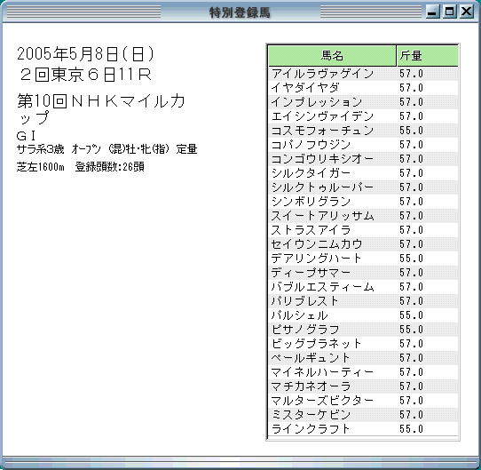 ・桜花賞や皐月賞での有力メンバーがなぜか登録されています。