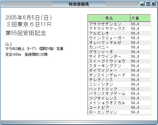 | 3 | ダイワメジャー | 牡4 | 栗 | 58 | 柴田善 | H二二|P二千|5休養|@千六 | −▲−− | ○○−−− |