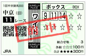 | 6 | 9 | シンボリグラン | デムーロ | 1 | ● | ワイド | 11−14 | 900円 |