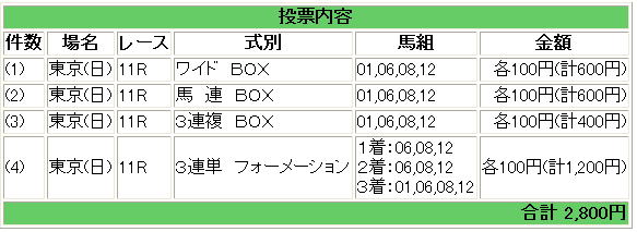 ・今回はパドックを見てから購入します。武豊を買いそうな気もします。