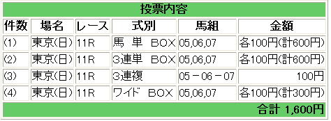 ・穴馬狙いには堪えた結果です。やはり外れても本命は買わないほうが・・・