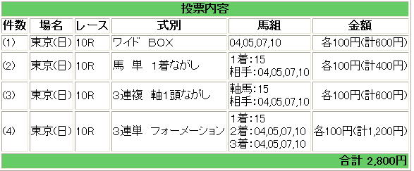 | 1 | 3 | ウオッカ | 四位 | 3 | 複勝 | 03 | 420円 | |