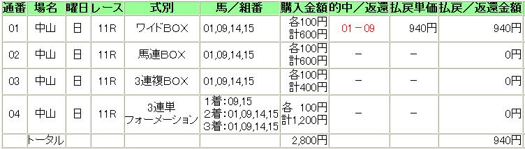 | 3 | 9 | マイネルチャールズ | 松岡 | 1 | ○ | 09 | 150円 | |