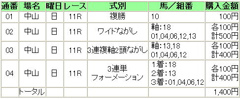 ・買い目だが今回も選択頭数が多いので一頭軸流しで買ってみる。