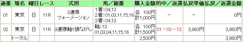 ・本命側を5頭と多くしたので@ダイワバーバリアンまで買えました。