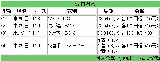 ・前に買って宣言した時に当たったこと無し。痛い目に会っているので買い目は増やさず。