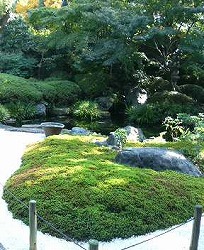 ・みごとな庭 苔・池・鯉・水練鉢 チロチロと水の音。 |