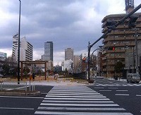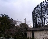 | ・動物園越しに通天閣を撮る。 | ・遠くに天王寺駅が見えてきた。 |