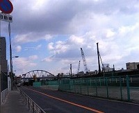 | ・また川に突き当たる。今度はすぐに大阪ドームの方が橋と分かる。 ・ああっ、大阪なのに京セラドームだった。 ・尻無川らしい、岩崎橋を渡って大正駅に。 |