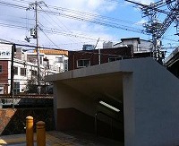 ・阪神電車が地下に潜っている所で 行き当たりとなる。 ・ちょうど車から荷物を出している 人に道を尋ねる。 ・こわい顔の人だったがやさしく 教えてくれた。 ・少し戻って地下道に。 この地下で人が生活をしていた。 |