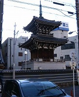 | ・高架下に店がたくさん有る。うどんや餃子の皮を作っている。 ・突然、2重の塔が・・・。岡松寺と書いてある。 |