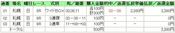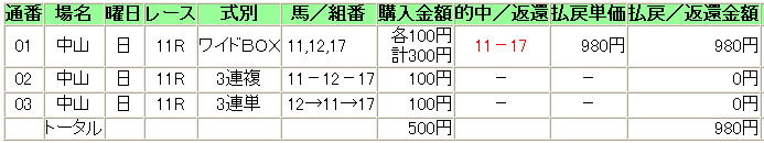 | 1 | 1 | ミッキーウィスパー | 藤岡佑 | 1 | 3.1 | ○ | ・いつものようにパドックを見て @Fが良さそう。 イースーチーだなとCも購入。 ・NEXTは無しなのでOZZや人気は なんもなし。 |