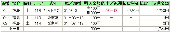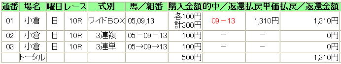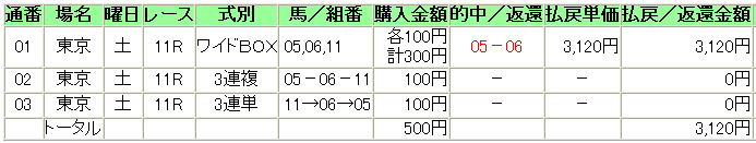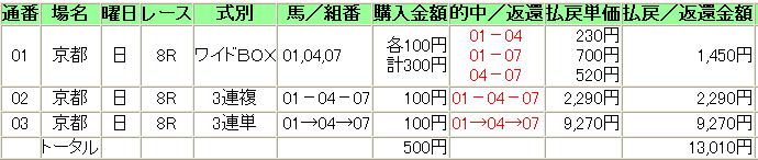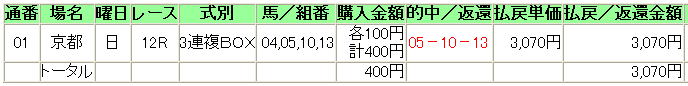 ・結果固めの購入だったが3連単様々、やはり当たると気が大きくなる。