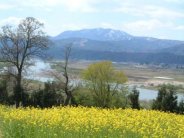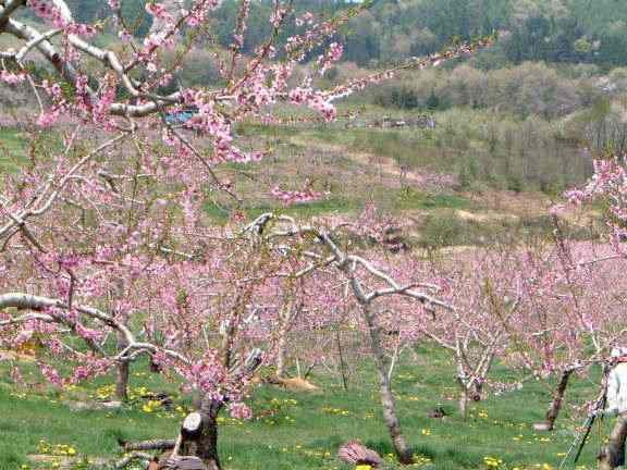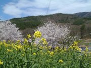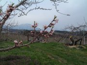 飯山へ行きました。野沢菜の菜の花が満開直前でした。右は、長野市内の桃畑です。遠く妙高と黒姫が見えます。2001年5月の連休中は、満開でした。