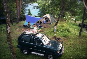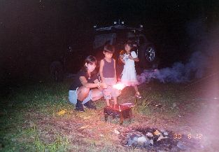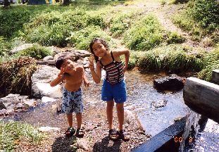 カメラの前でハイピース!! 筏で遊んでます (^o^)