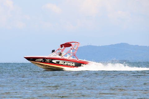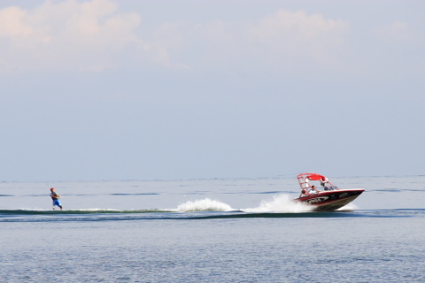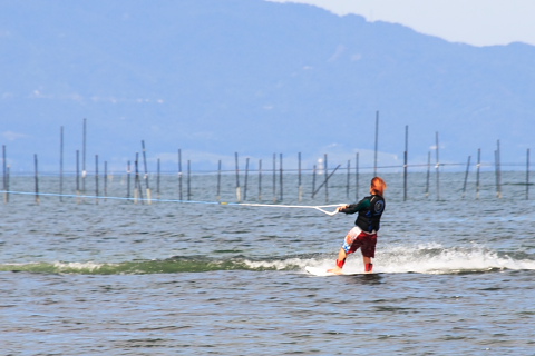 上の写真のボートに引っ張られている人です。