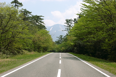 米子方面から大山に向かう道路です。ちょうど正面に 大山が見えます。