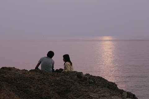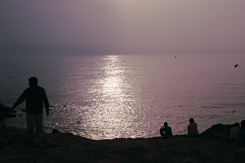 日御碕で夕日と夕日を見る人を撮影しました。