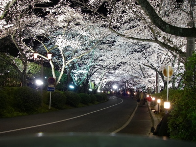 夜に夜桜を見に行きました。