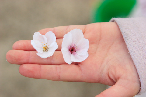 子供が落ちている花びらを拾いました。