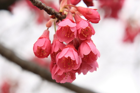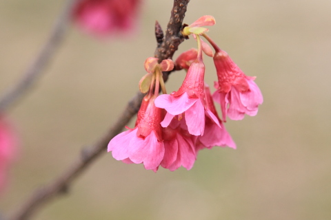 カンヒザクラが咲いていました。しかし、全部下向きに咲いています。