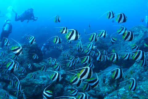 今年2回目のトカラ列島ツアー 7月下旬開催の狙いは真夏の高気圧下のベタ凪(静かな海)! 台風さえ来なければ外洋も凪が多くなる時期なのです。 今回の行程は 鹿児島串木野港〜口永良部島〜中之島〜諏訪瀬島〜 潜ったのは 湯瀬(デン島)、ニヨン、芽瀬、口之島平瀬、臥蛇木場立神、雄神瀬、小臥蛇沖の瀬、諏訪瀬島須崎、中之島ラクダ トカラ好きの人にはたまらない場所ばかりかも。 参加の皆さんと黒潮パワー全開の海に飛び込み力いっぱい味わってきました! |