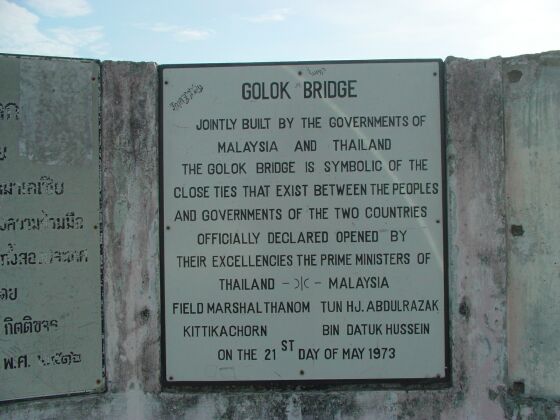 マレーシア側から見た国境と橋の真ん中にあるタイ・マレーシアとの境