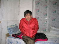 ダンプスのロッジで、今日はもう歩かなくていいとわかるとニコニコ、でもちょっと寒くないか?